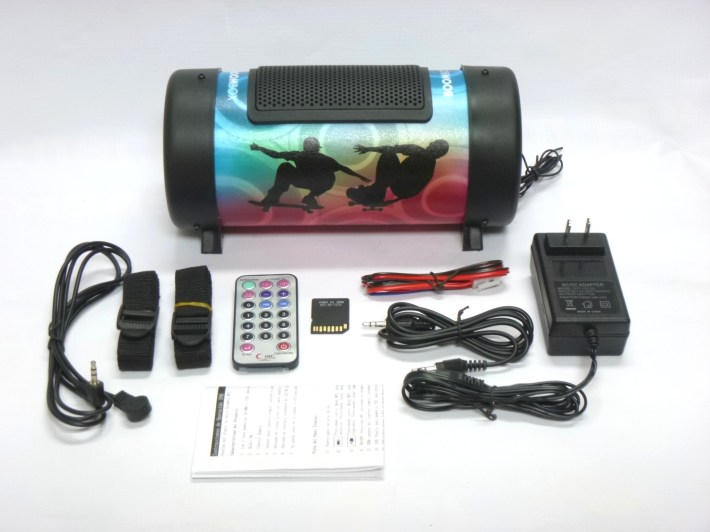 Accesorios incluidos: Adaptador AC-DC, control remoto, adaptador de memoria microSD, cable auxiliar con plug de 3,5 mm, cable extensión de control remoto, dos cinchas para moto, cable de conexion a 12 Vdc